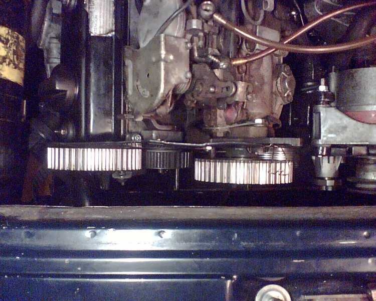 Her er lige et billed af motorrummet fra da jeg henstillede bilen til næste dag, takthjulet ser noget mere skæv ud på billedet end det gjorde i virkligheden, måske det er vinklet det er taget i. Man kunne ikke se skævheden med det blotte øje når man kigge ned oppe fra.